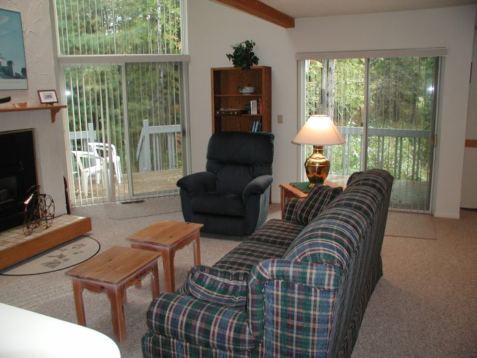 Sliding glass doors open onto your private deck.