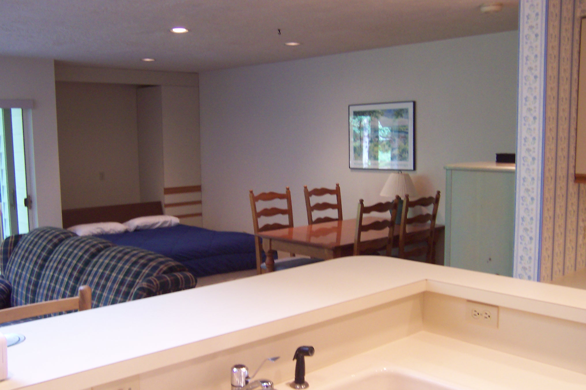 Sliding glass doors open onto your private deck.