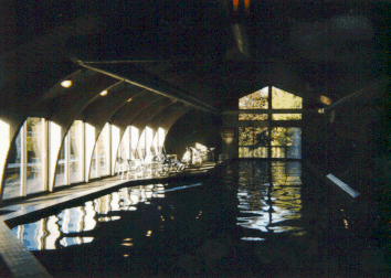 ![]() The interior of the pool shows that it has lots of room for swimming or just relaxing. Decks on either side of the pool building allow for suntanning on warm days.