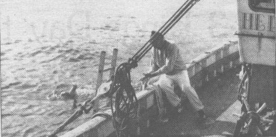 the rubber dinghy and headed back to the Helen Ann Marie. We're